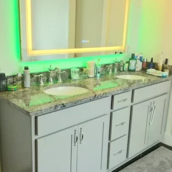 Elevate your bathroom’s ambiance with our LED Vanity Mirror, a perfect blend of elegance and functionality. This mirror is not just a reflection of you but a showcase of your taste for the finer things in life. Its modern design, complemented by RGB backlighting and dimmable features, brings a touch of luxury to your daily routine. Whether you’re getting ready for the day or unwinding in the evening, this mirror provides the perfect lighting to suit your mood and needs.