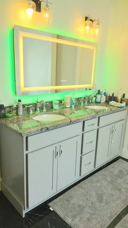Elegant LED Vanity Mirror with RGB Backlight & Dimmable Anti-Fog Features for Modern Bathrooms