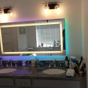 This LED Vanity Mirror stands out for its sleek design, advanced features, and ease of use. Its versatility in light modes makes it ideal for various activities like applying makeup, shaving, or simply admiring your reflection. The RGB backlight adds a contemporary flair to any bathroom, making it not just a mirror but a statement piece. With over 10 years of experience in crafting superior quality mirrors, we assure reliability and durability in every product.