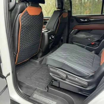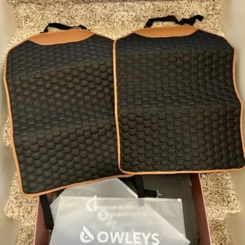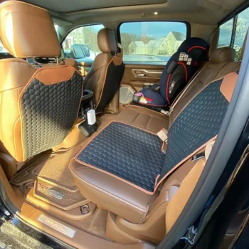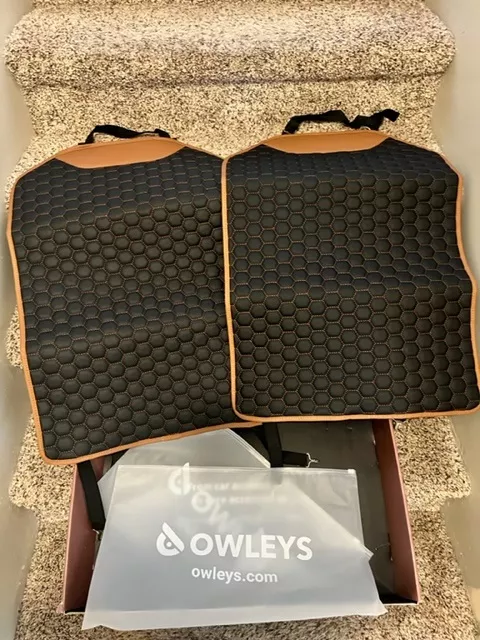 i recently got these premium eco leather kick mats and they’ve been fantastic. my kids love to kick the back of the seats, and these mats have saved my car’s upholstery. the eco leather looks and feels high-end, and it matches my car’s interior perfectly. installation was a breeze, just strap them on and they’re good to go. they stay in place and don’t slide around, even with constant kicking. cleaning is super easy – just a quick wipe and they look like new. these mats have really helped keep my car clean and stylish. highly recommend to anyone with kids.