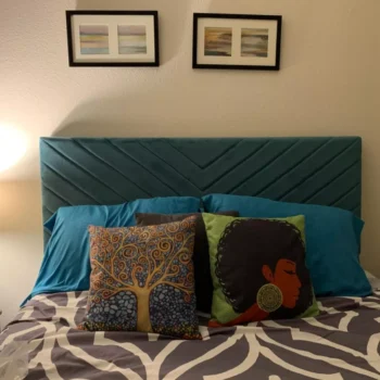 Experience the ultimate in customization and comfort with our adjustable headboard. Offering three height settings, it caters to your unique comfort needs, whether you enjoy reading in bed or watching TV. The plush upholstered headboard, measuring 76.4″L x 81.9″W x 42.5″H, is not just a statement of style but also a promise of comfort. Our bed frame’s sleek, modern design, accentuated by its stunning blue color and wood finish, effortlessly complements any bedroom decor. Its appearance embodies modern style, Scandinavian simplicity, and a hint of modern Morocco, making it a versatile addition to any interior design theme.