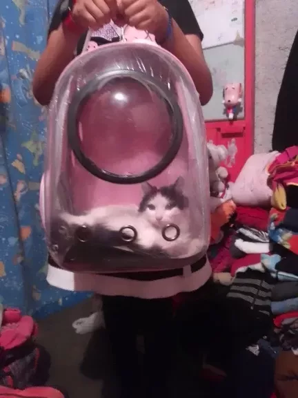 this cat backpack is perfect for my needs. my cat loves being able to see everything through the transparent design, and the ventilation keeps them cool and comfortable. the backpack is well-constructed and sturdy, with padded straps that make it easy to carry. it’s stylish and functional, ideal for vet visits or outdoor adventures. my cat seems very comfortable and secure inside. it’s also easy to clean, which is a big plus. i’m very happy with this purchase and would highly recommend it to other cat owners looking for a quality carrier.