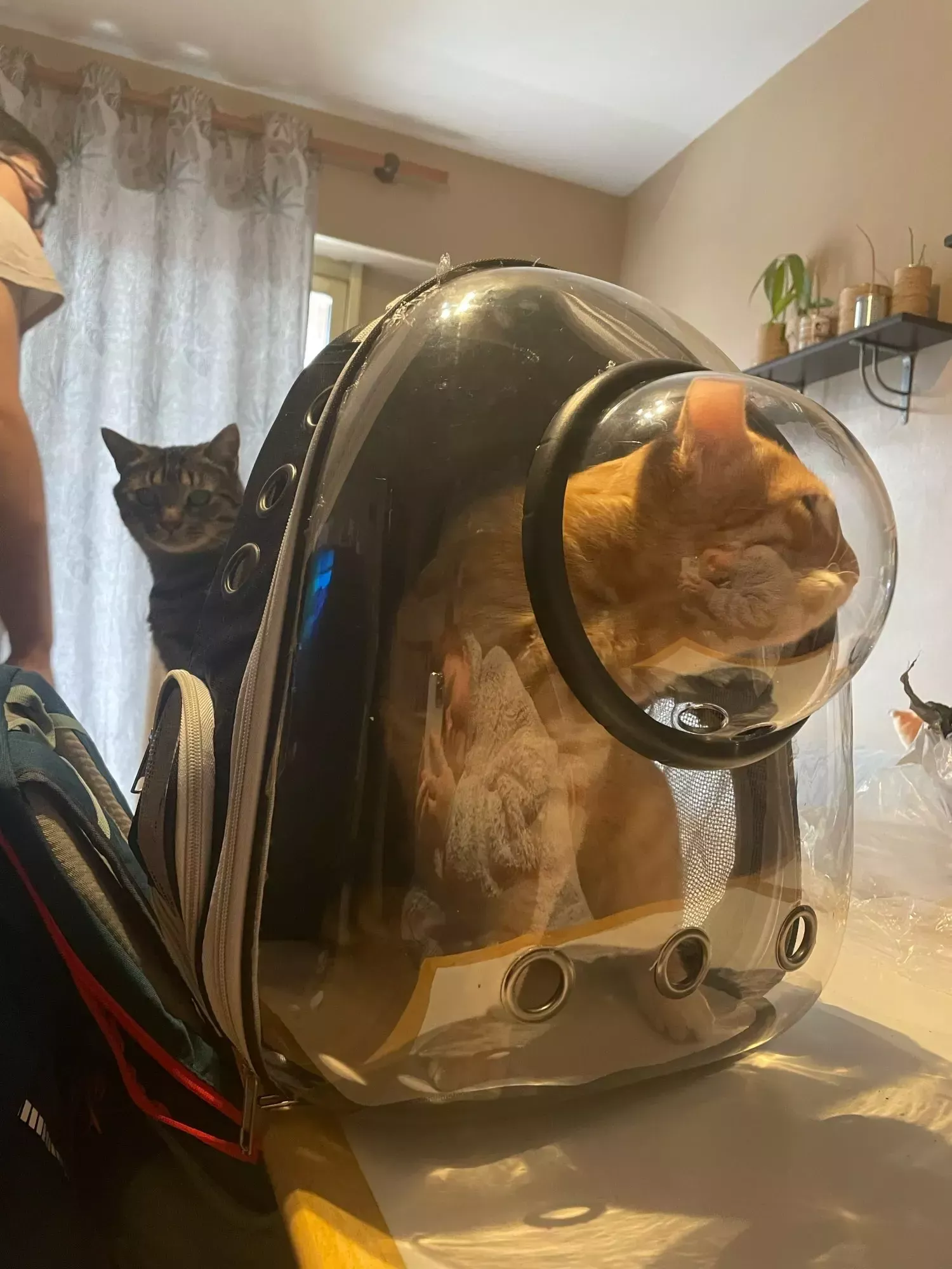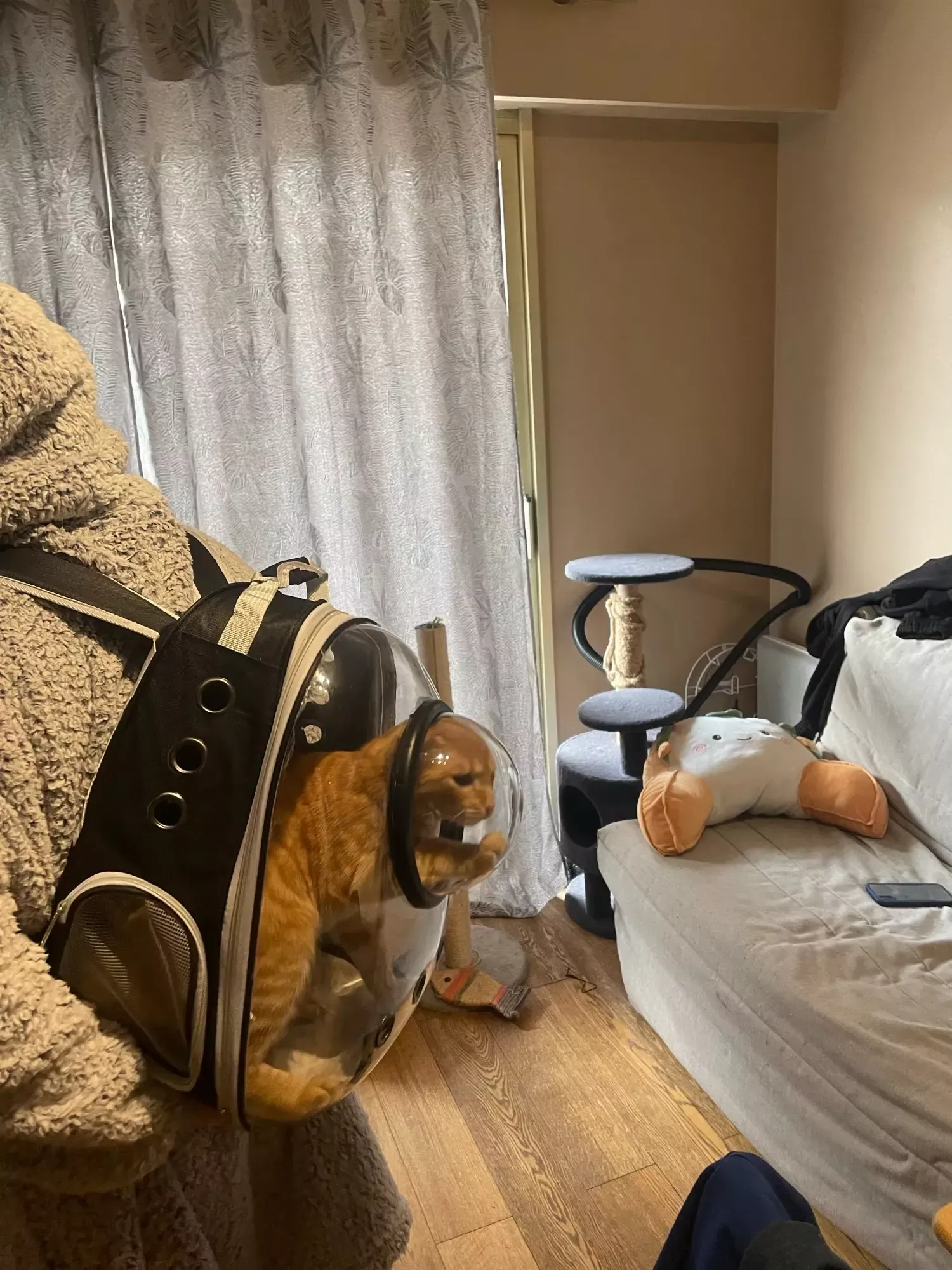 My cat loves to look out of the window in this backpack. It’s her personal little spaceship.
